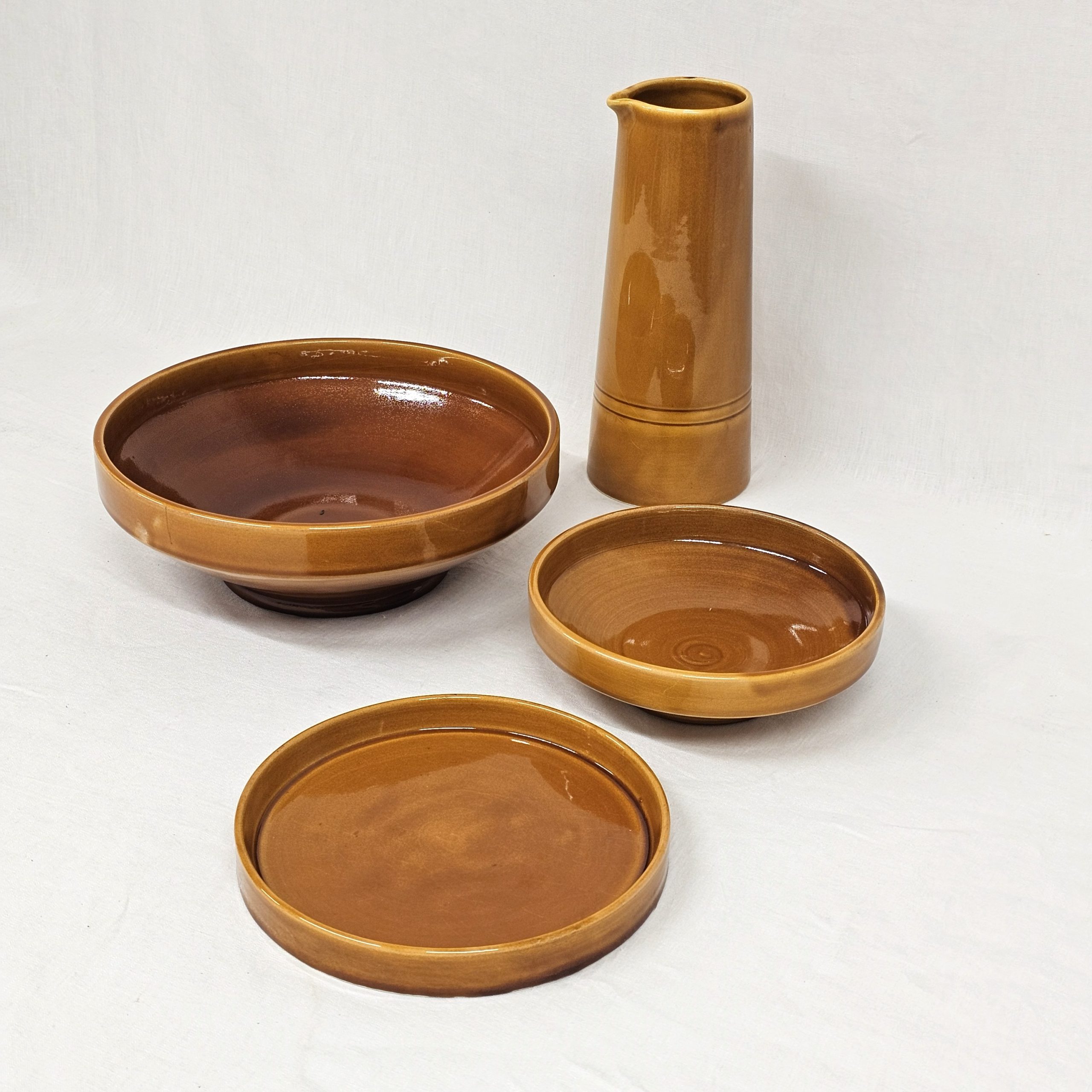 Brocca in cristallina color miele senza manico e con 2 righi leggermente incise sulla superficie ideale per acqua o altre bevande.